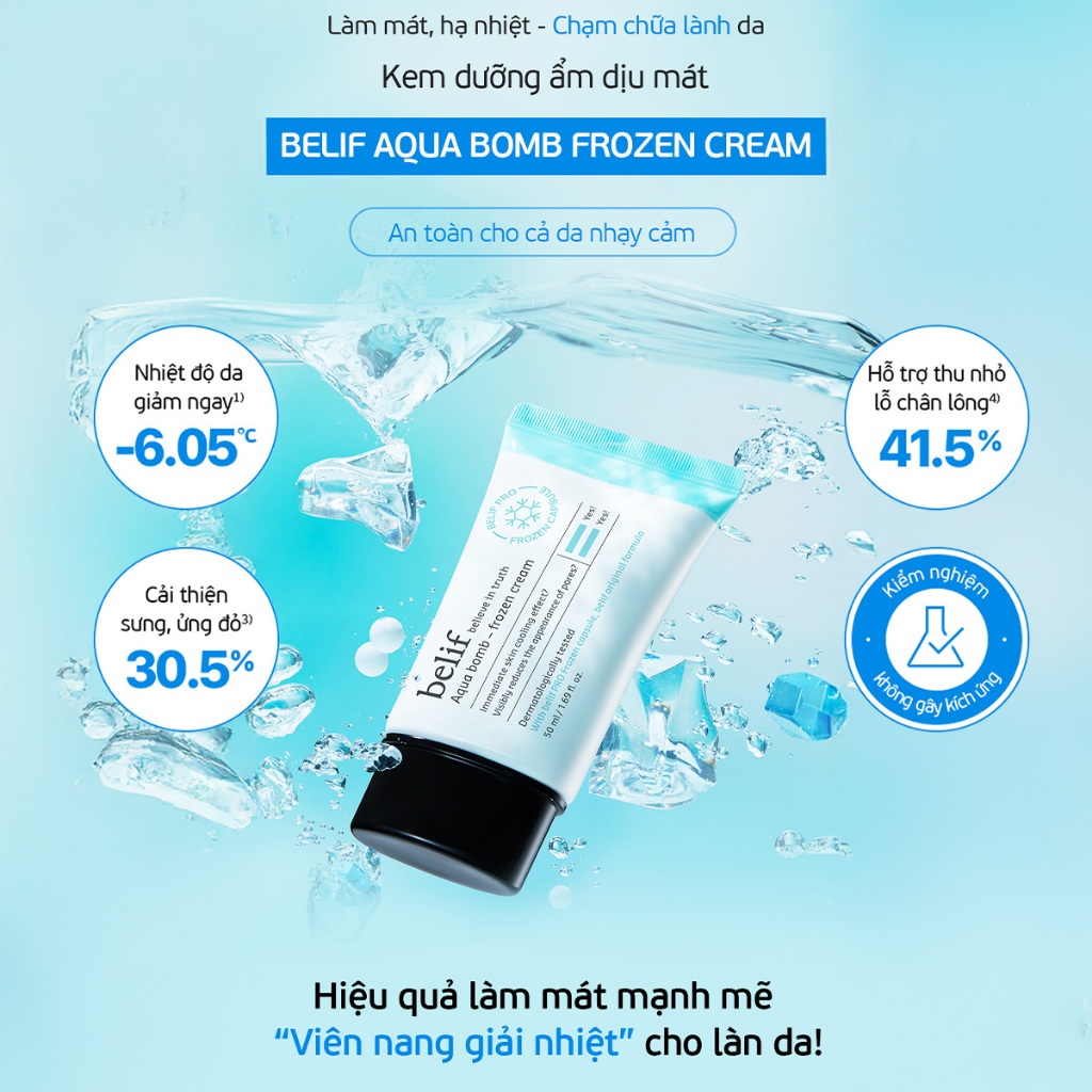 [Hàng công ty] Set Kem dưỡng làm dịu da và thu nhỏ lỗ chân lông BELIF AQUA BOMB FROZEN CREAM 50ml + 10mlx2