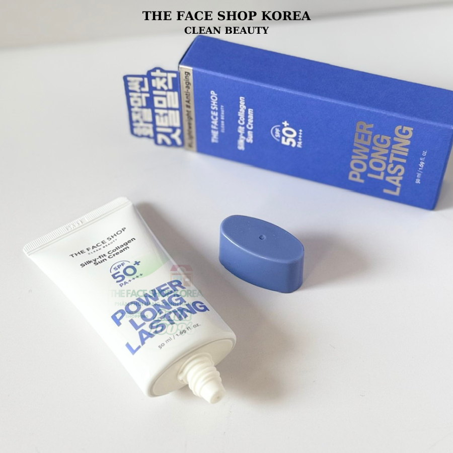 Kem Chống Nắng Collagen Lâu Trôi THEFACESHOP Power Long Lasting Silky Fit Collagen Sun Cream 50ml