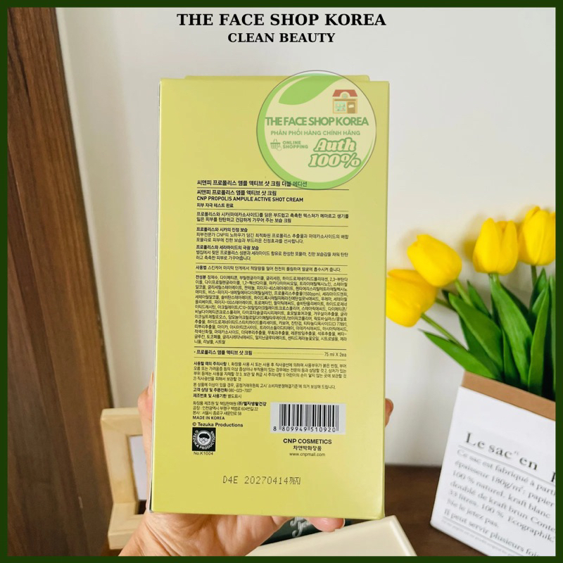 Kem dưỡng ẩm phục hồi và tái tạo da chiết xuất keo ong CNP Laboratory Propolis Active Shot Cream 75ml + 75ml