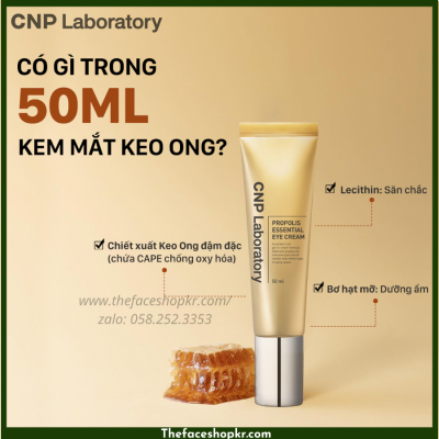 Thông tin cơ bản của kem mắt keo ong CNP: - Dung tích: 50 ml - Xuất xứ thương hiệu: CNP Laboratory (Hàn Quốc) - Nơi sản xuất: Hàn Quốc