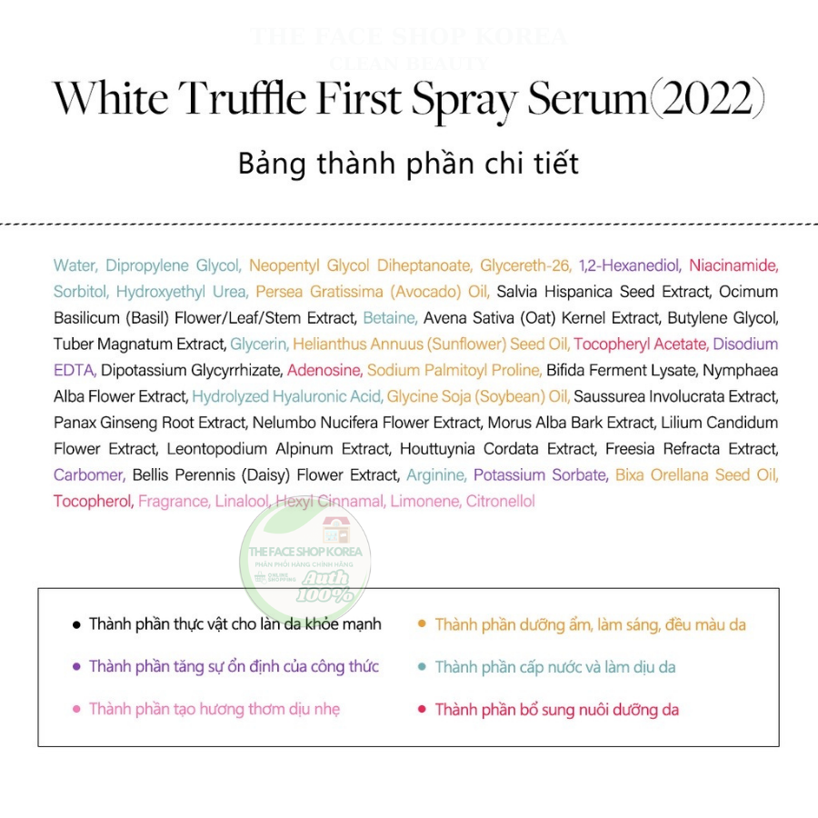 Serum dạng xịt khoáng căng bóng da First Spray Serum góp phần làm giảm nếp nhăn và tác dụng làm trắng, đồng thời mang lại trải nghiệm dưỡng ẩm toàn diện. Dòng tinh chất mỏng nhẹ, không gây cảm giác nặng mặt mà sẽ bám trên da suốt cả ngày.